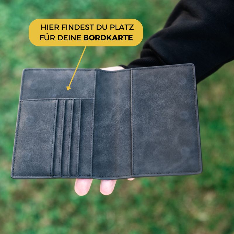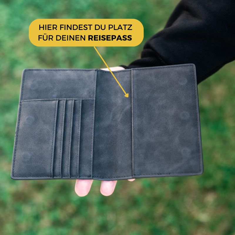 The passport cover offers space for 2-3 Cards (z.B. CreditCards, businessCards, a Tracker Card or travel insurance certificates).