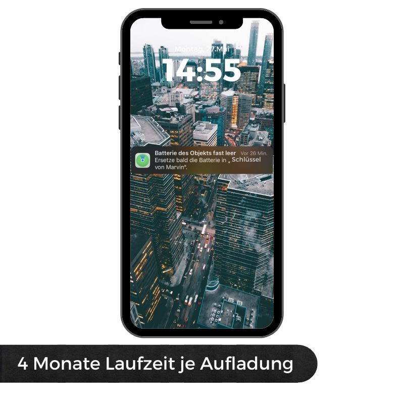 Our GPS key tracker impresses with a long-lasting battery that charges via USB-C – quickly, reliably, and without unnecessary cable clutter. Your key tracker is ready for use again within minutes and offers several weeks of battery life on a single charge.